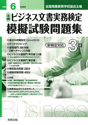 Update:2024-03-22 「令和6年度版 全商ビジネス文書実務検定 模擬試験問題集 3級」Word2007による文書の作成ダウンロードファイル形式:pdf(5.02MB)